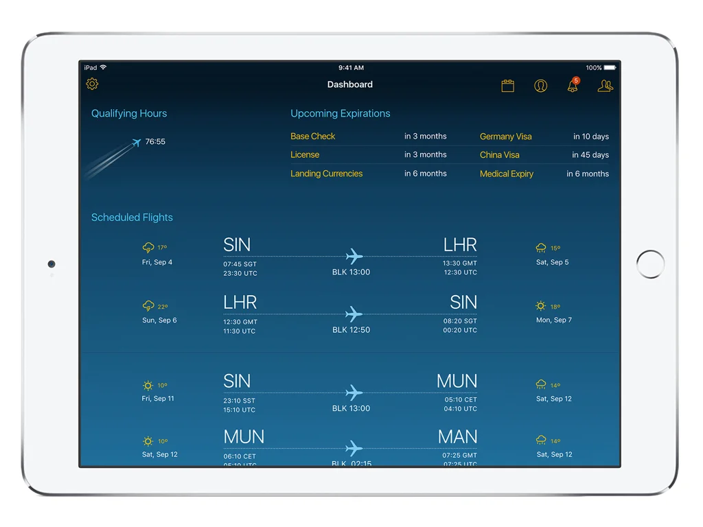 With the Roster app, Pilots receive alerts and notifications for updates, changes, reminders and calendar entries. iOS capabilities like iMessage and FaceTime are used to enhance collaboration between pilots. Touch ID for login is used to ensure security and privacy, based on which content will be presented contextually. Analytical capabilities in driving alerts for qualifications, changes to roster and defining required qualifications for a route, makes this app unique.